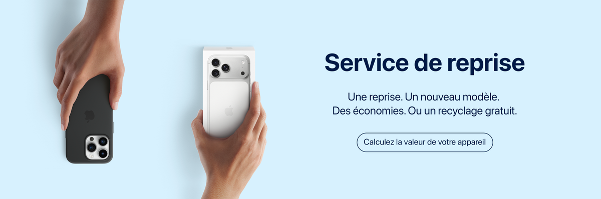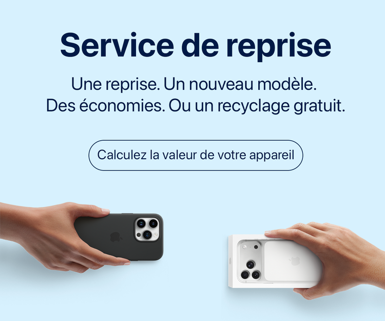 Vous pouvez échanger votre ancien appareil via notre service Trade-In : la valeur de votre appareil est convertie en bon d’achat ou en réduction immédiate sur votre nouvelle acquisition. Calculez la valeur de reprise de votre appareil ici.