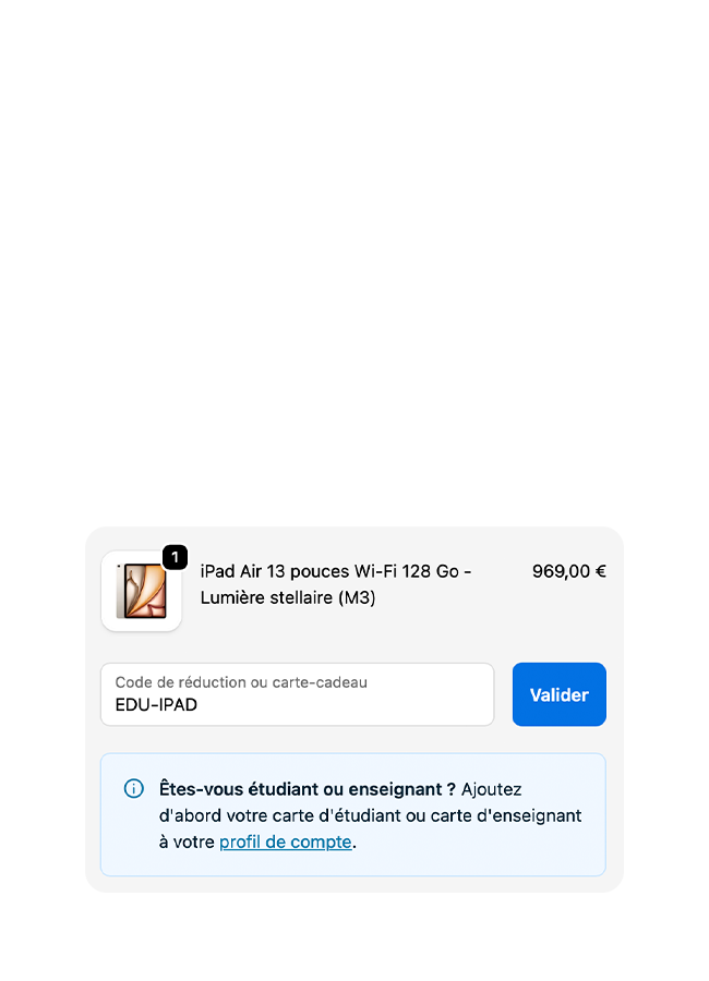 Profitez de la remise éducation sur un nouveau Mac ou iPad.