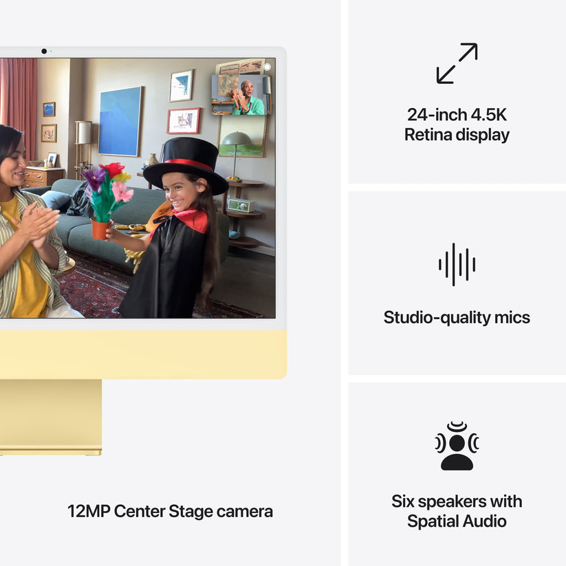 ÉCRAN IMMERSIF – L’écran Retina 4,5K de 24 pouces offre 500 nits de luminosité et prend en charge un milliard de couleurs.