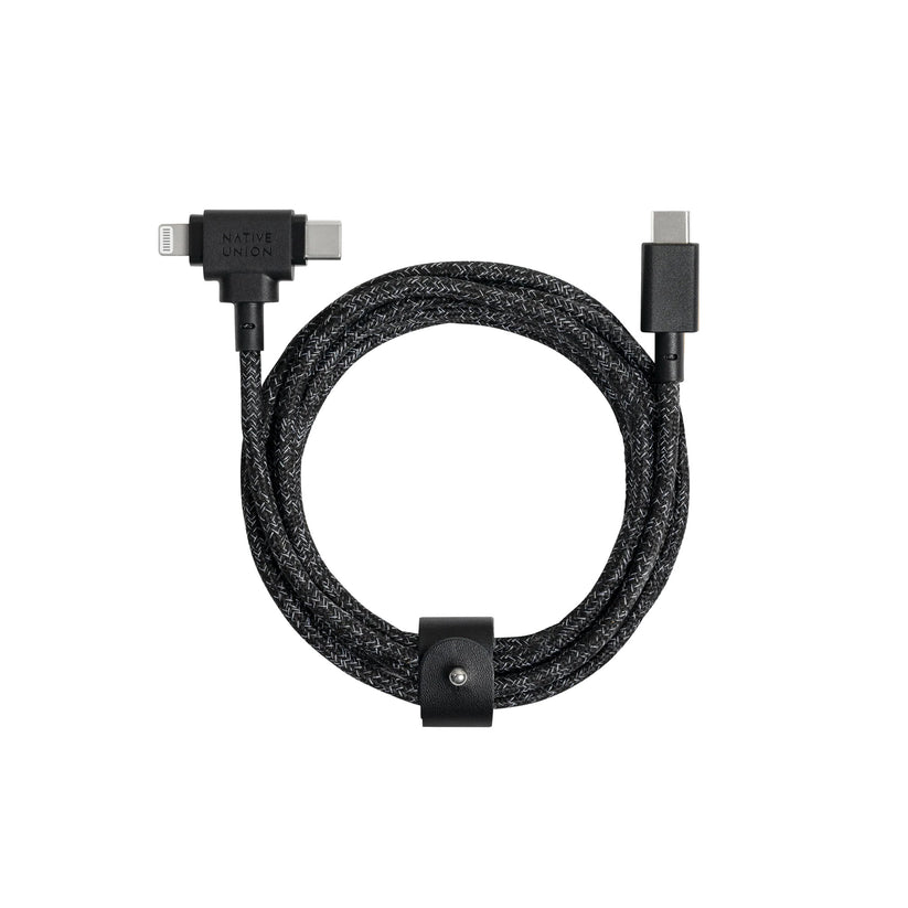 Native Union Belt Duo Câble USB-C vers USB-C/Lightning - 1,5m - Noir Cosmos