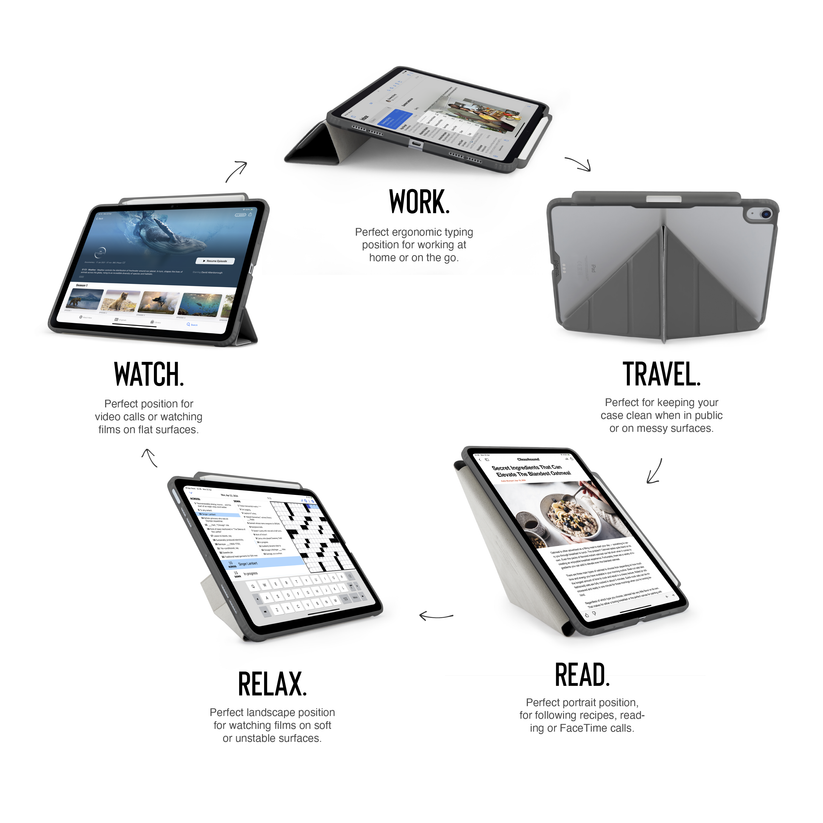 L'Original Origami, l'étui iPad le plus populaire avec Pencil case, n'a pas son pareil pour améliorer l'expérience de votre iPad, grâce à son design pliable 5-en-1. Il est également très efficace pour protéger votre appareil grâce à sa coque TPU absorbant les chocs, ses poches d'air internes et sa couverture avant magnétique.