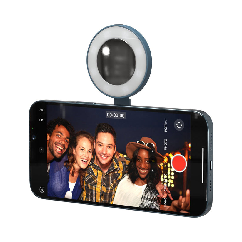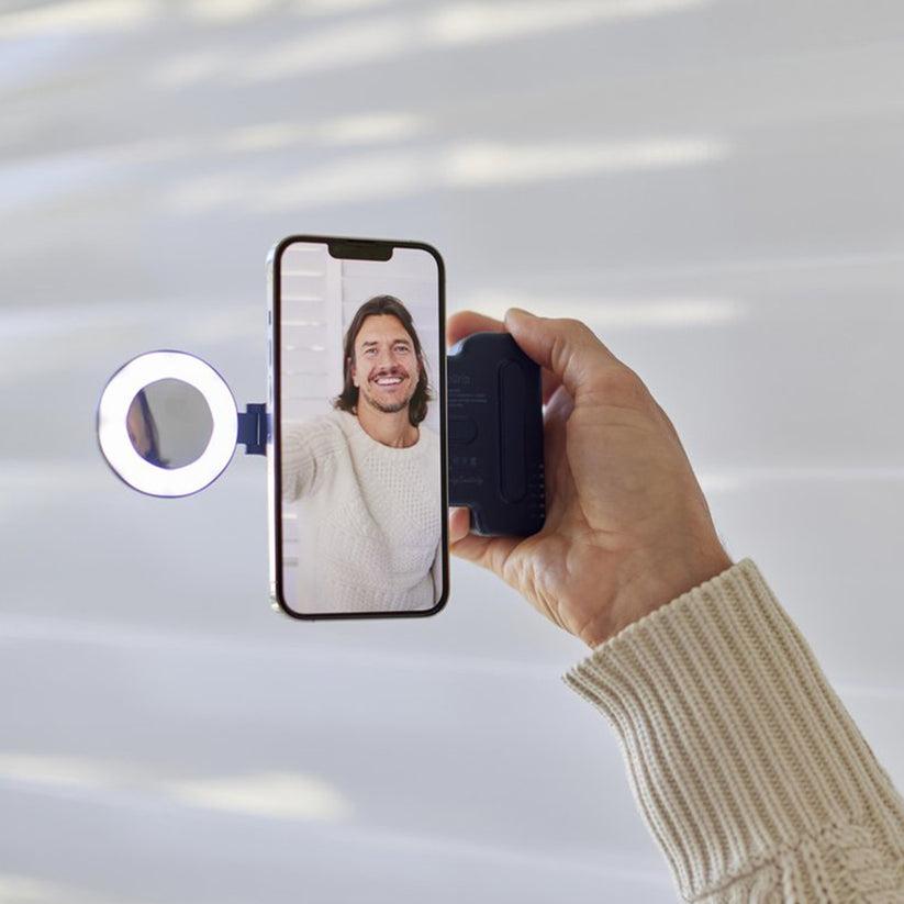 La SnapLight de Shiftcam est un anneau LED magnétique pour créer de la lumière en mains libres. La SnapLight assure un éclairage parfait pour toutes les photos prises à l'aide d'un smartphone. Grâce à son design pliable, la SnapLight peut être utilisée aussi bien pour les selfies que pour les photos prises avec la caméra arrière. De plus, vous avez le choix entre quatre niveaux de luminosité pour régler l'éclairage idéal en fonction de votre environnement. Un miroir situé au milieu vous permet de vérifier votre apparence avant de prendre un selfie.