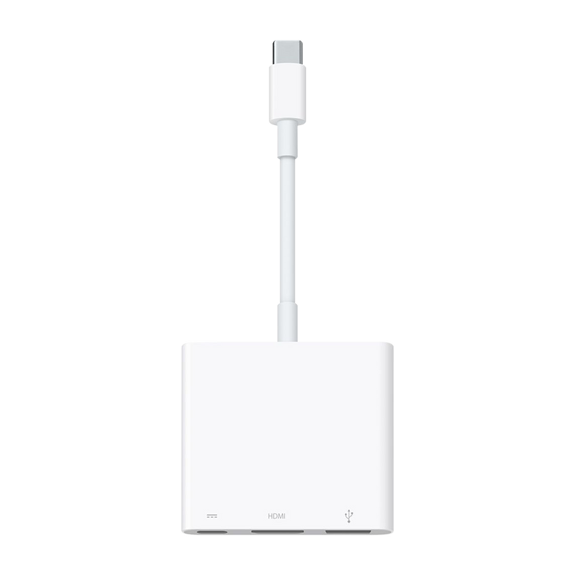 Utilisez l’Adaptateur multiport AV numérique USB‑C pour connecter à votre Mac un écran HDMI, des appareils standard, des câbles de charge ou autres.