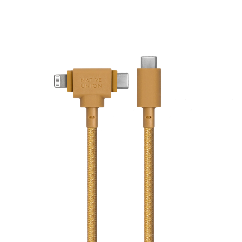 Native Union Belt Duo USB-C-naar-USB-C/Lightning-kabel - 1,5m - Mosterdgeel