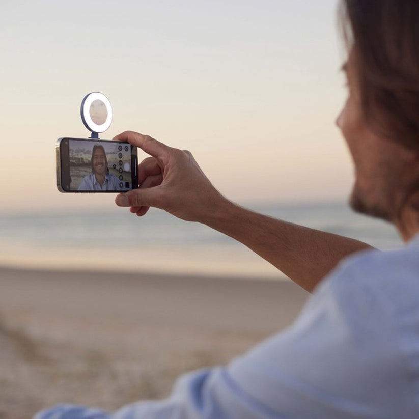 De SnapLight van Shiftcam is een magnetische LED-ring voor handsfree verlichting. De SnapLight zorgt voor de perfecte belichting van al je smartphone foto’s. Gebruik de SnapLight voor zowel selfies als foto’s met de achtercamera dankzij het uitklapbare ontwerp. Bovendien heb je keuze uit vier helderheidsniveaus om het ideale licht naargelang je omgeving in te stellen. Met een spiegeltje in het midden kijk je nog even of je haar goed ligt voor je een selfie neemt.